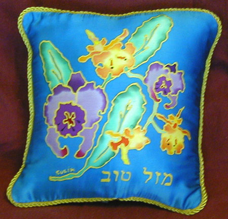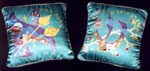 Full sized pillows are 16" offered individually or as a set. Backed with silk Noil, the edges are corded, inner pillows are removable.