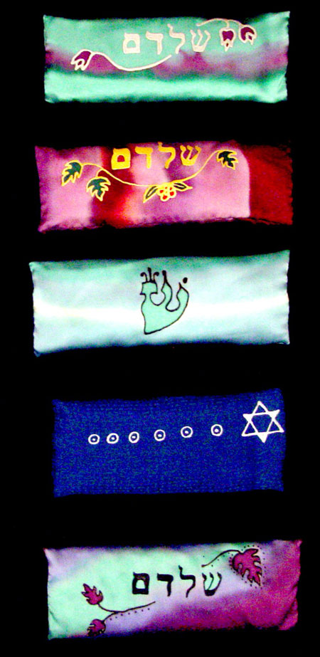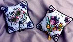 pillows are 8" x 11" backed with silk noil, corded,