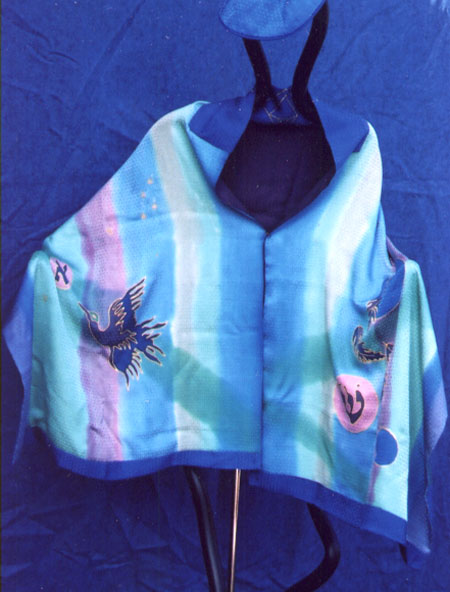 Tallitot are one of a kind, beautiful and unique. Approximately 2' x 6', corners prepared and reinforced to receive Tzitzit.